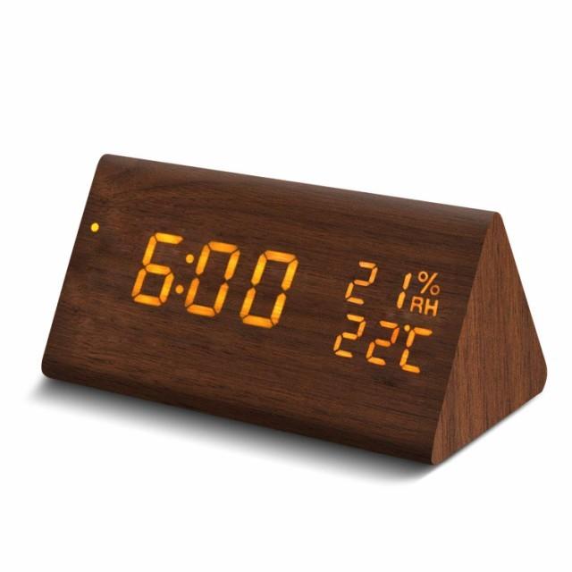 目覚まし時計 置き時計 Led 大音量 音声感知 デジタル 木目調 おしゃれ 多機能 アラーム カレンダー 温度湿度 省エネ 卓上寝室台所用 三角タイプ Wo Happiness広場 通販 Yahoo ショッピング